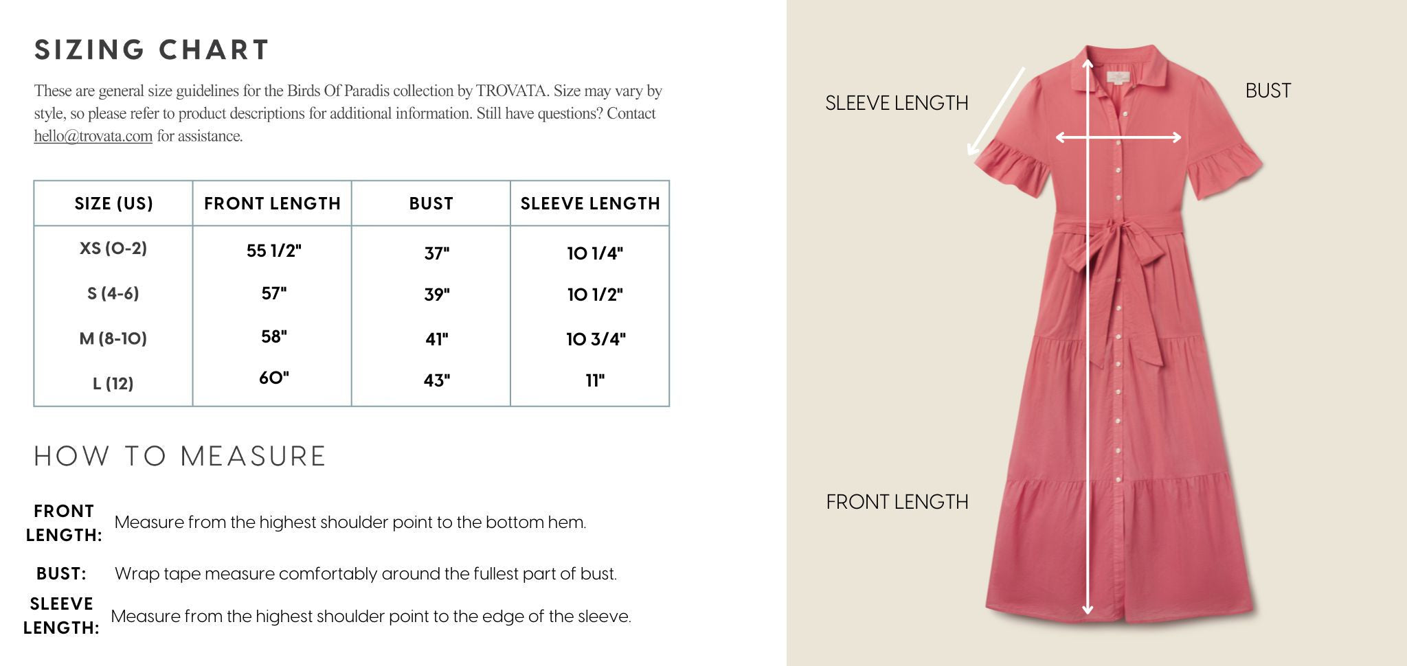 - View the product size guide