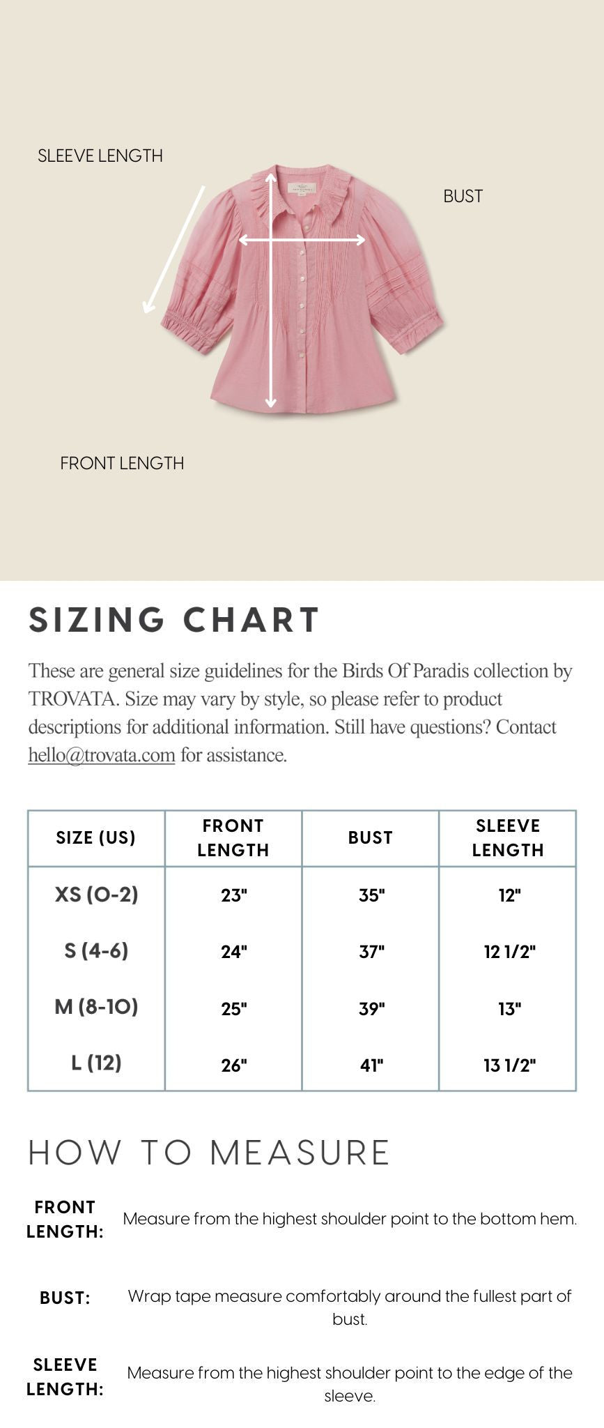 - View the product size guide