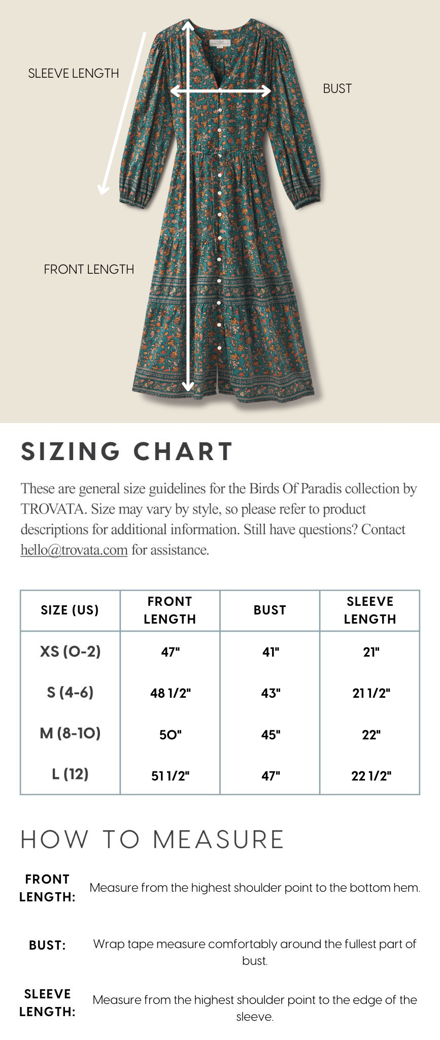 Our Sylvie Dress is inspired by our Ainsley "B" Dress and features a v-neckline and antique white buttons down the front. A thoughtful self-fabric drawstring at the waist helps create shape with hidden side seam pockets for functionality. The multi-tiered skirt layers lend extra drama and flattering movement. Shown here in Sunfade Garland and made from our cotton silk.