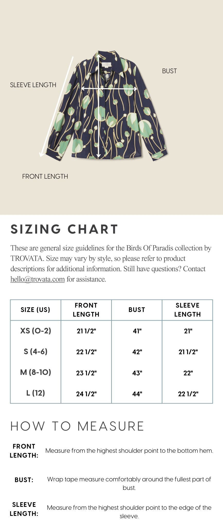 Introducing a new take on our Grace Classic Shirt, the Jacquelin Shirt. This shirt fits true to size, has a clean front, and a slightly exaggerated collar. Shown here in Jade Tulip. Made from our viscose.
