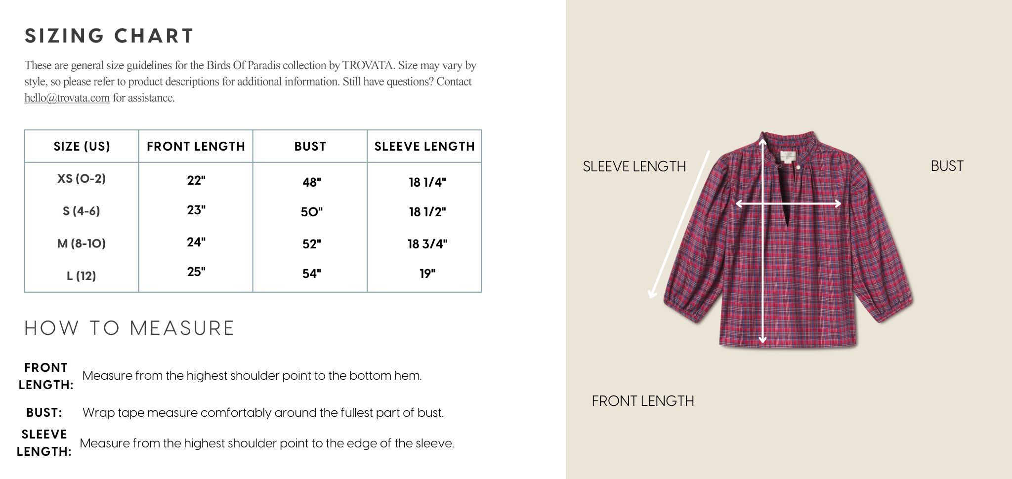 The Orly Blouse is a slightly cropped, billowy blouse with straight bottom hem, split v-neckline and buttoned crown collar. Gathered three-quarter length sleeves finished with delicate bindings. Includes our signature back detail with a gathered waist tab. Shown here in Mulled Wine Plaid and made from our cotton.