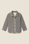 The August Jacket is a cropped and quilted jacket with folded shawl collar, hidden snap closures, front patch pockets, straight sleeves and tonal binding finishes. Shown here in Onyx Check and made from our cotton.