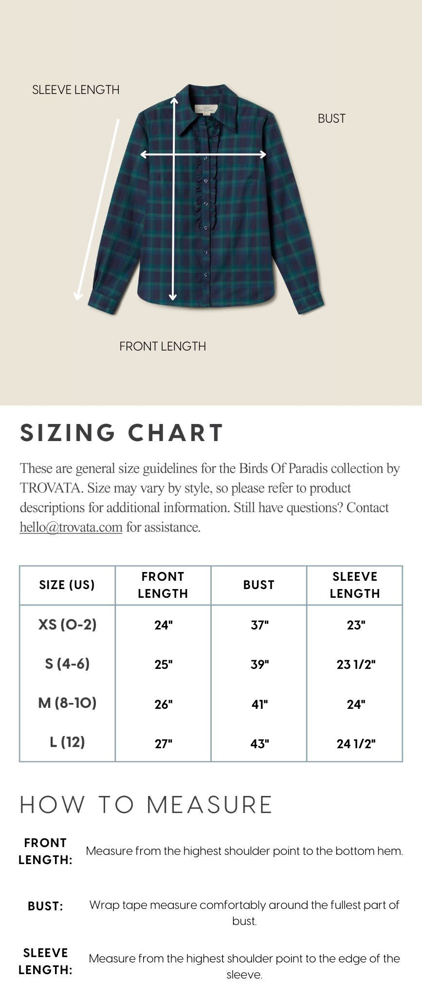 The Ava Shirt is a button-down with a slightly oversized fit, with a gentle ruffle down the front placket and completed with antique white buttons. Made from our coastal cotton and shown here in nocturne plaid.