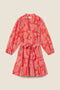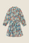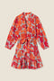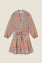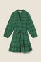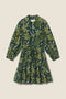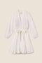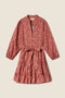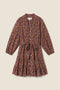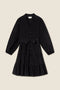 The Celeste Dress is a mini-length dress with a clean v-neck opening, full-length gathered sleeves, and two gathered skirt tiers for added movement. A removable waist sash is added alongside two rows of top stitching for added detail. Featuring our signature hidden side seam pockets. Shown here in Black Polka Dot and made from our viscose.