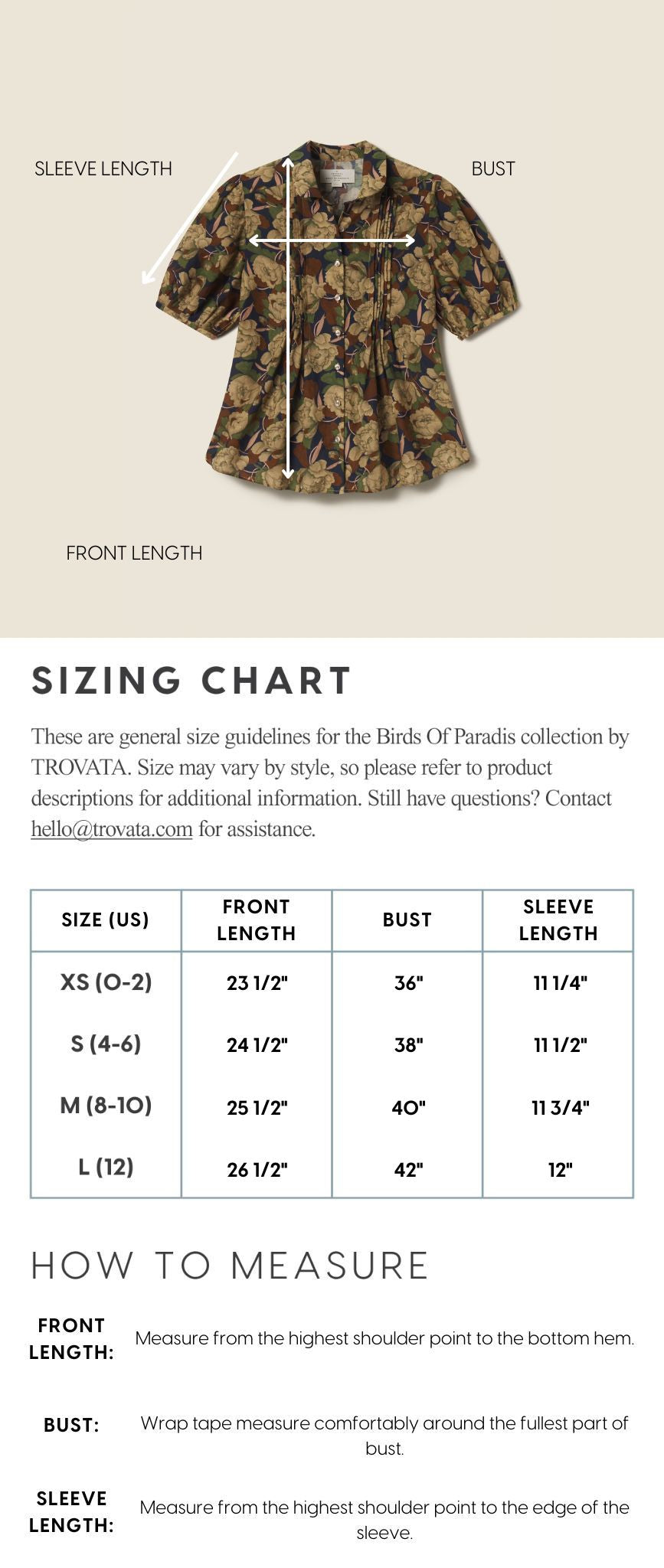 The Nadine Blouse is a short-puff sleeved blouse with a flattering curved hemline and petite pintucks that lend texture and hand crafted charm. Slightly cropped length keeps this blouse airy and whimsical. Shown here in Verbena Vail and made from our cotton viscose.