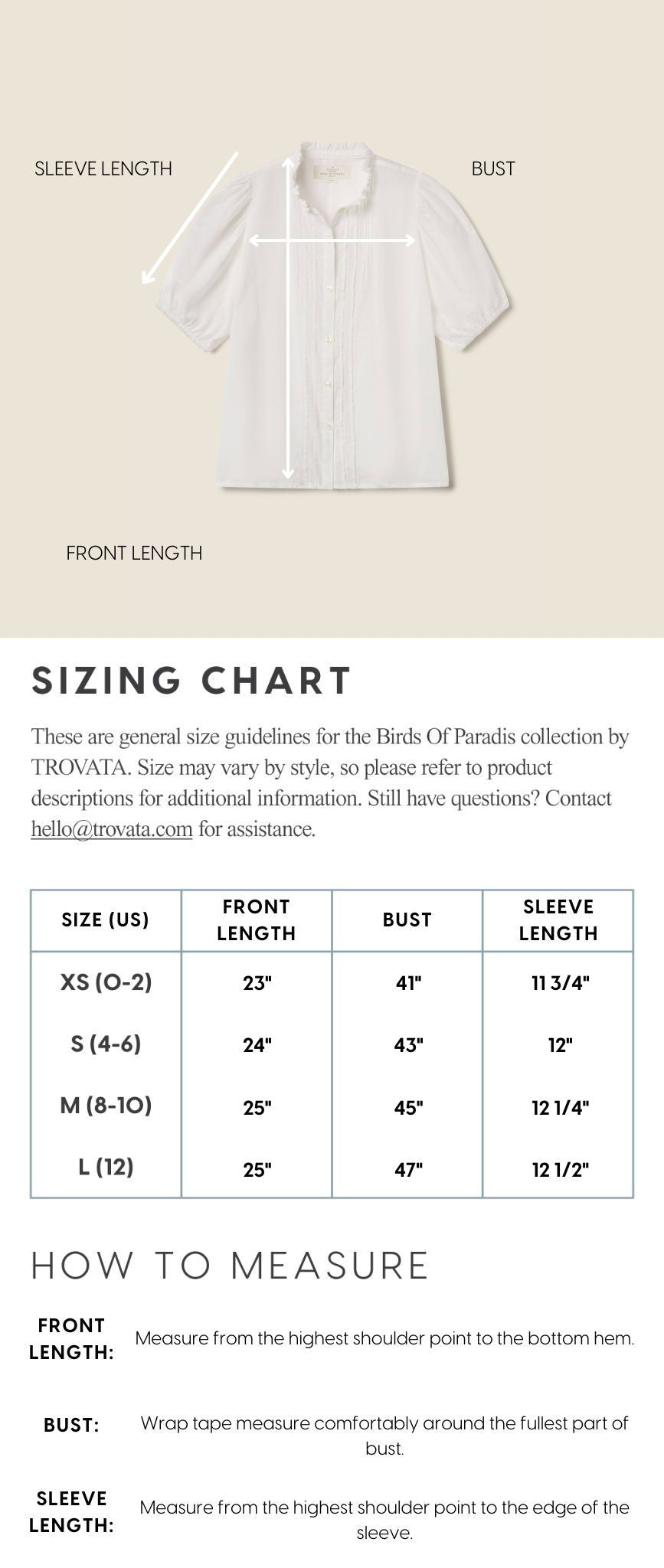 The Mira Blouse is a short-puff sleeved blouse with a flattering straight hemline and petite pintucks that lend texture and hand crafted charm. Slightly cropped length keeps this blouse airy and whimsical. Shown here in White and made from our cotton voile.