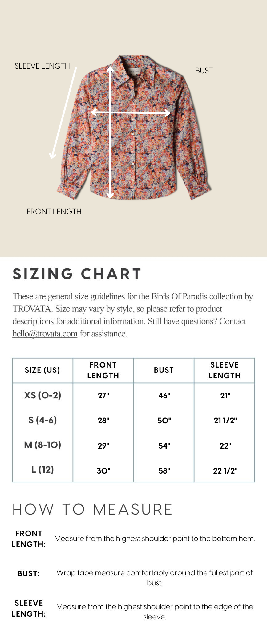 Introducing a new take on our Grace Classic Shirt, the Jacquelin Shirt. This shirt fits true to size, has a clean front, and a slightly exaggerated collar. Shown here in Vino Daisies. Made from our soft cotton.