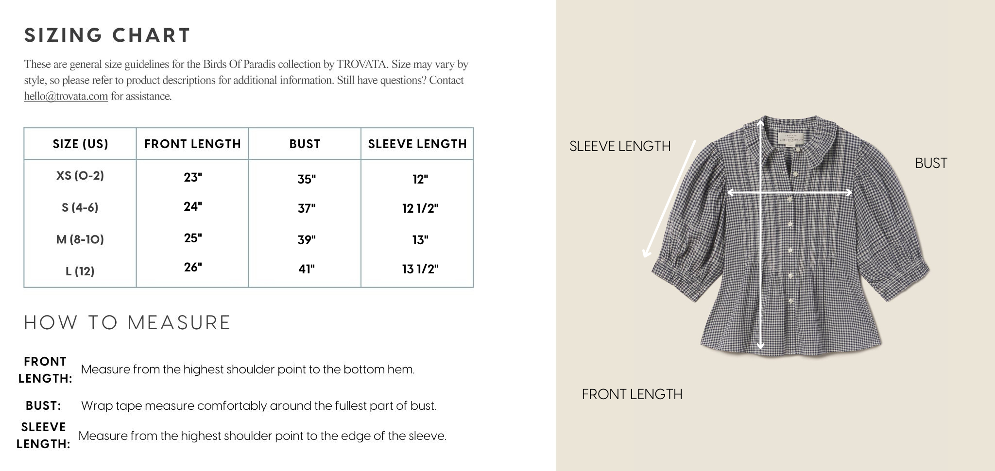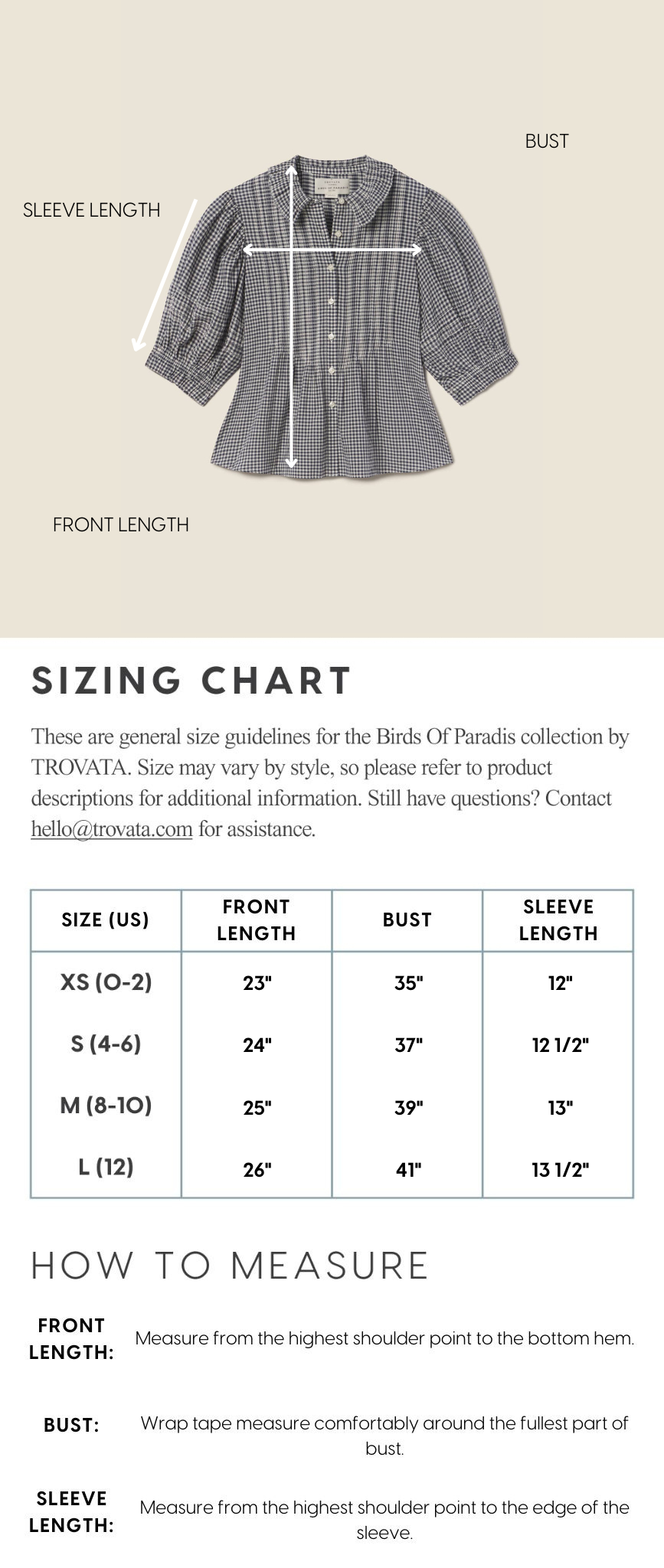- View the product size guide