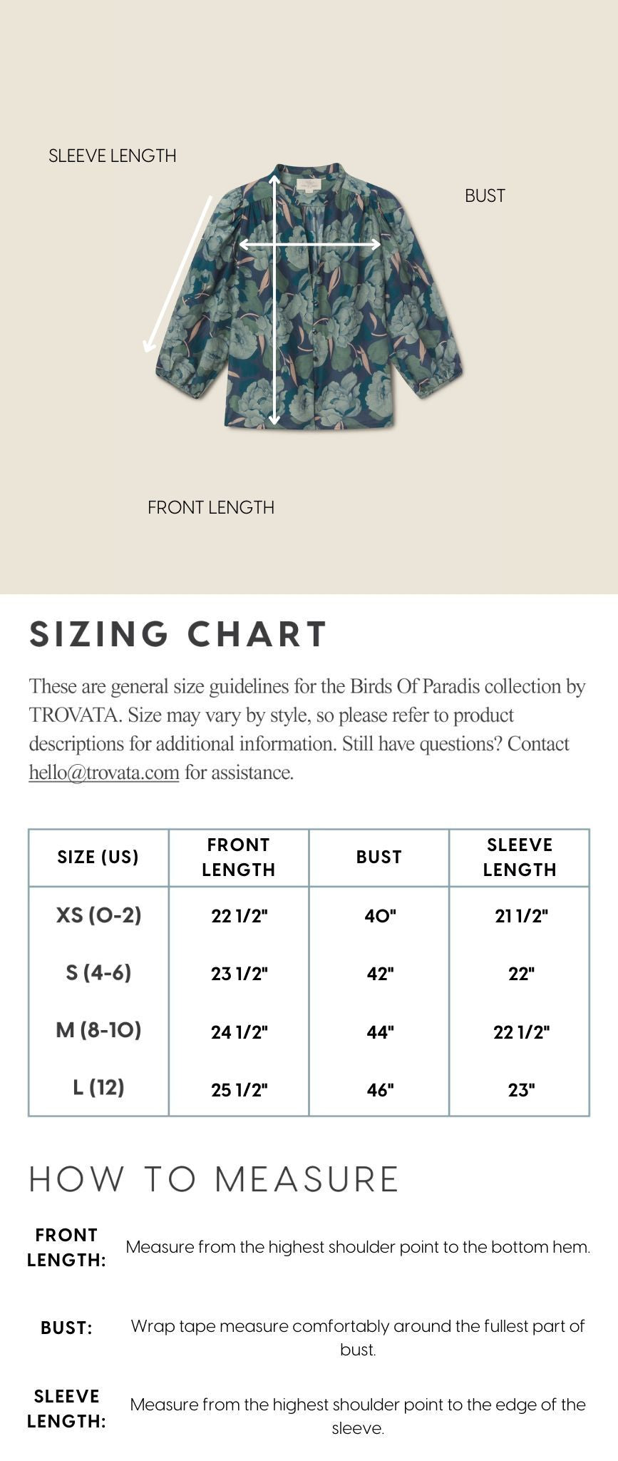 The Maisey Blouse is a button-front blouse with billowy shoulder gathers and a clean standing collar. Gathered three-quarter length sleeves are finished with delicate bindings. Includes our signature back detail with a gathered waist tab. Shown here in Hushed Shadow and made from our cotton silk.