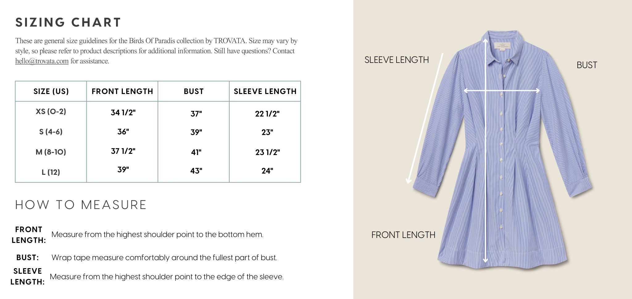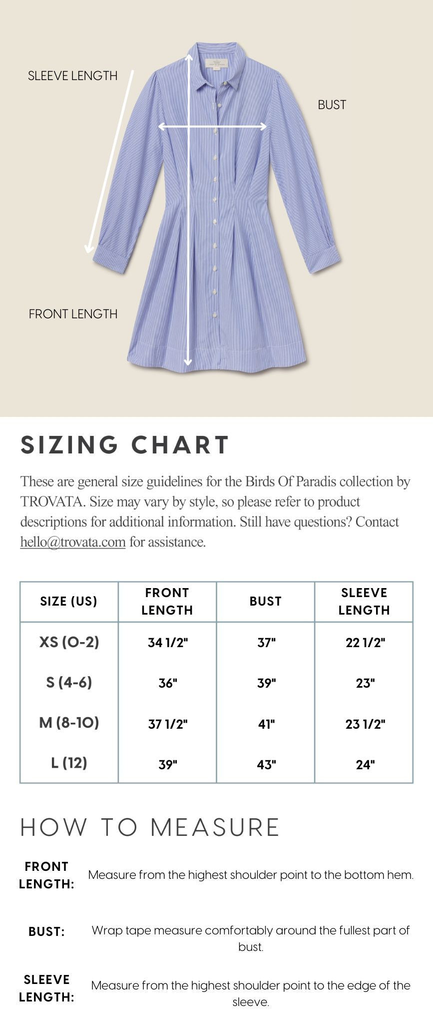 - View the product size guide
