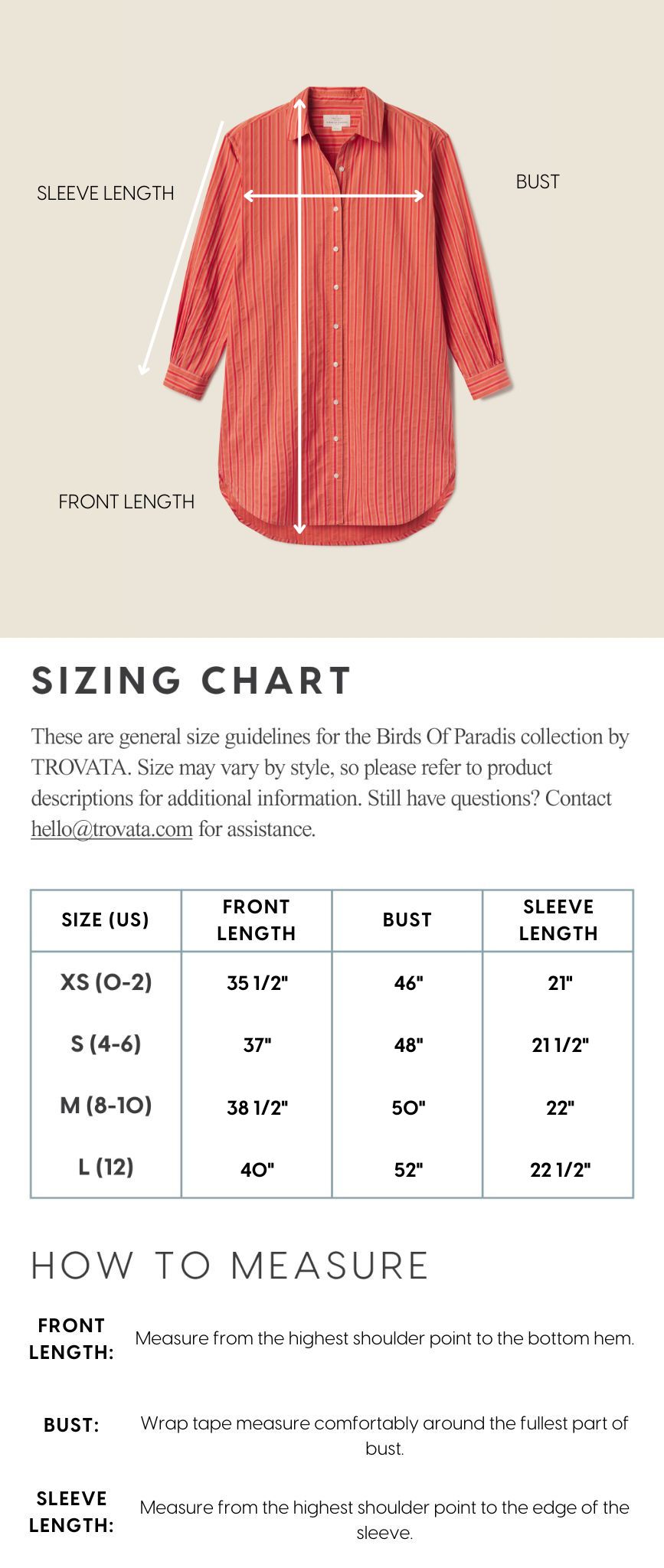 - View the product size guide