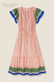 The Kristine Dress is a midi-length dress featuring double flutter sleeve layers, a narrow waist casing with drawstring, and a flowing skirt with delicate gathers. A functional buttoned placket complements the v-neckline. Featuring our hidden side seam pockets. Shown here in Santorini Border and made from our soft cotton silk.