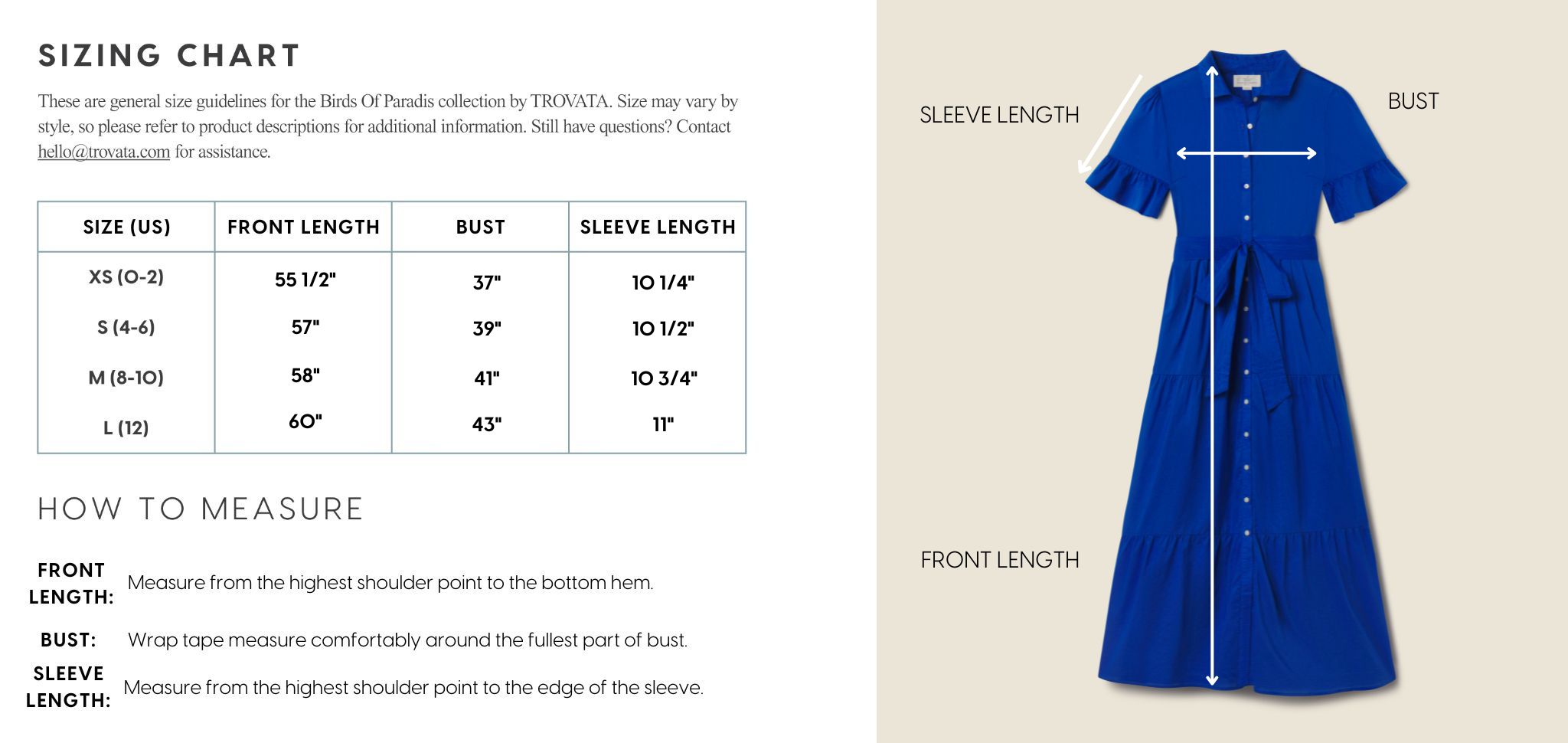 - View the product size guide