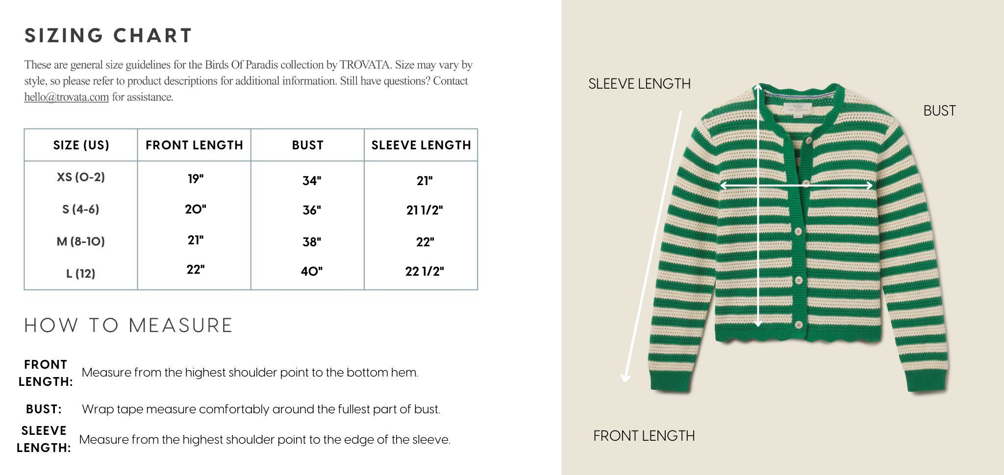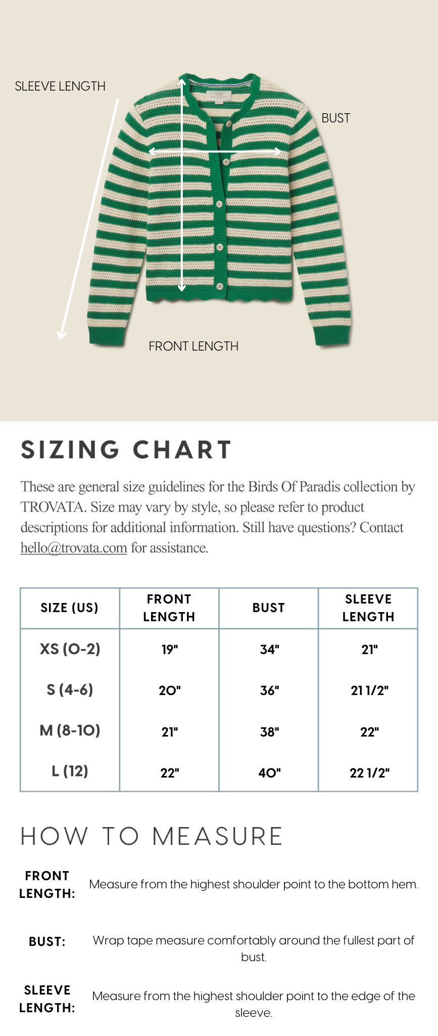 - View the product size guide