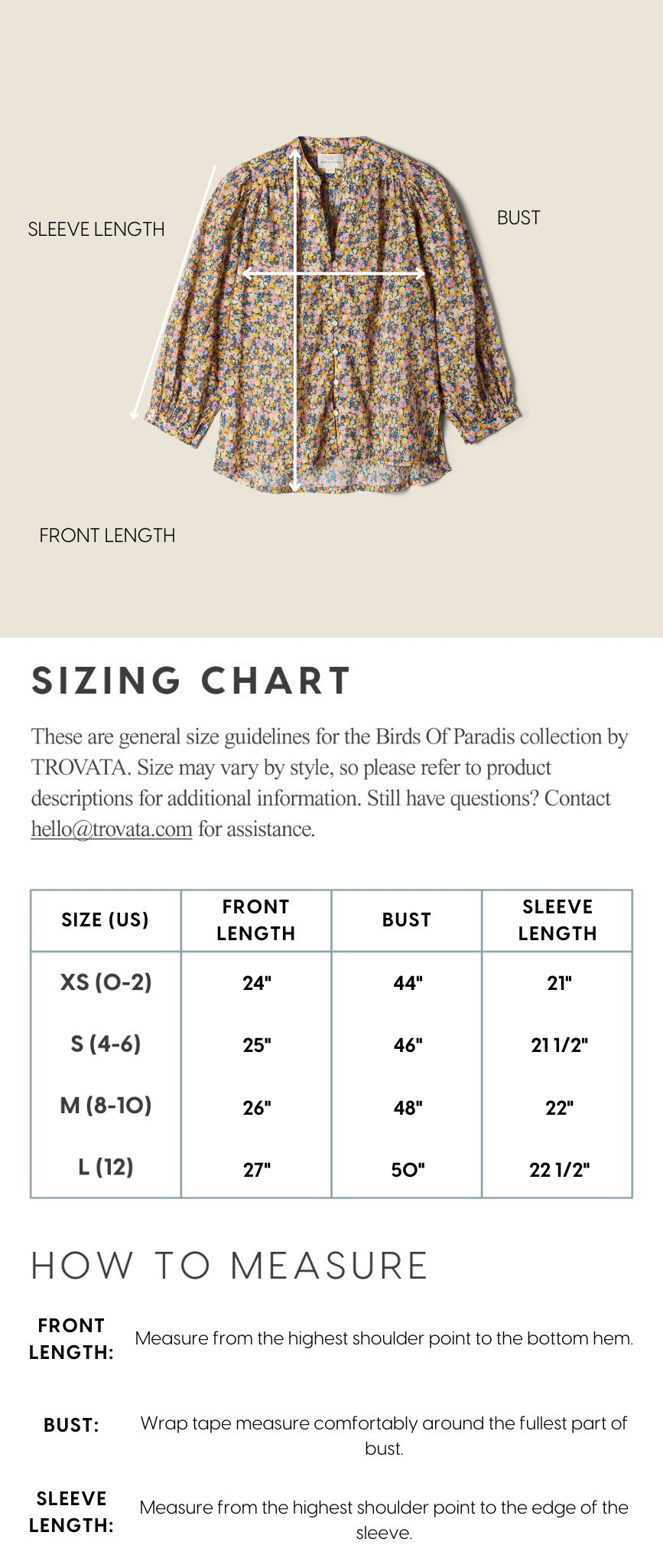 Our newest femme button down has our signature ruffled collar and pearl white buttons down the front. Finished with a flattering front v-neckline with gathers at the shoulder and sleeve hem. Shown here in Belle Rives. Made from our soft cotton.
