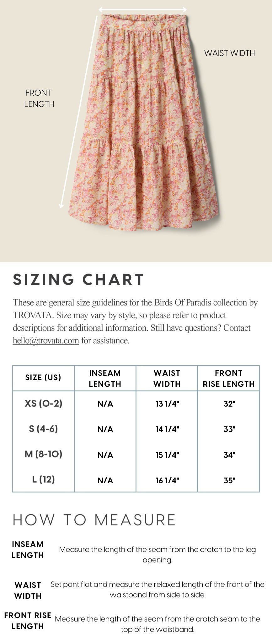 Our easy midi-length 3 tiered pull on skirt has a soft elastic waistband with matching fabric drawstring, finished with double tiered ruffle skirt. Shown here in Pink Currant. Made from our cotton silk..