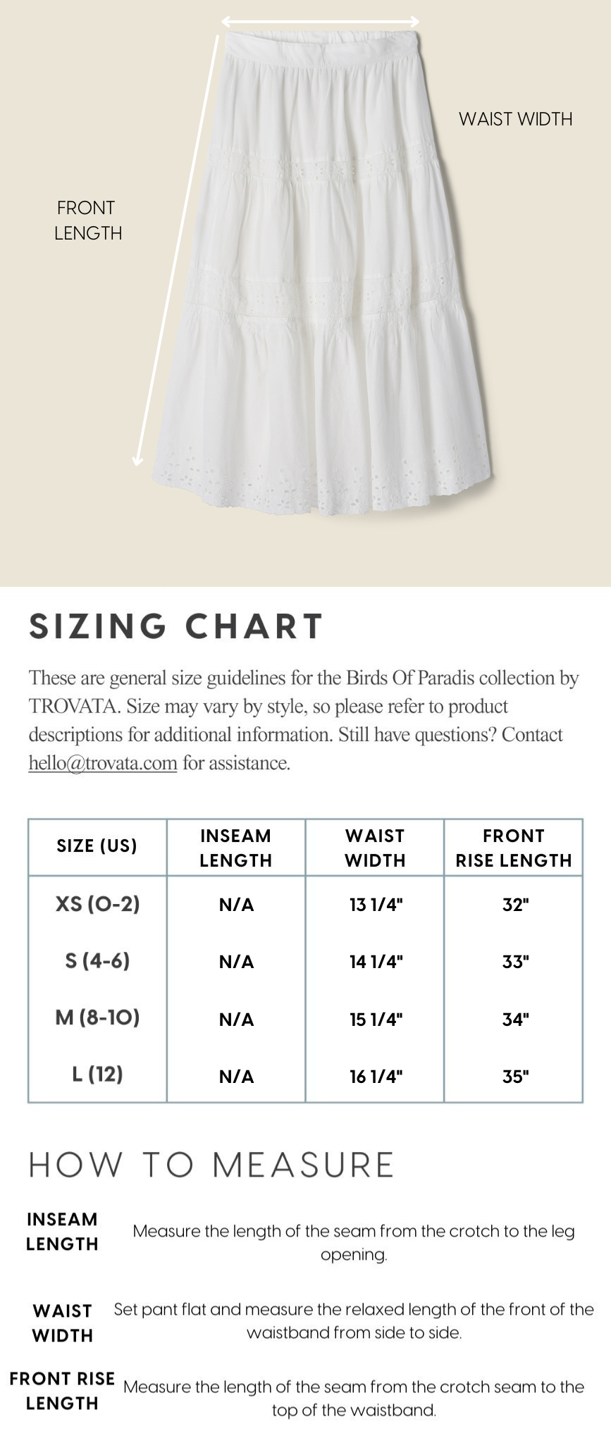 Our easy midi-length 3 tiered pull on skirt has a soft elastic waistband with matching fabric drawstring, finished with double tiered ruffle skirt. Shown here in Summer Eyelet. Made from our soft cotton.